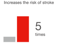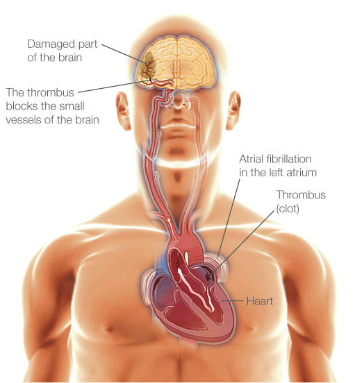 En el caso de la AF, las cámaras del corazón laten de forma caótica e irregular. Esto puede causar que la sangre se acumule en las aurículas del corazón, se agrupe y forme coágulos de sangre. Estos coágulos de sangre pueden entonces migrar a través del torrente sanguíneo al cerebro, donde bloquean los vasos sanguíneos y esto causa un accidente cerebrovascular. La parte peligrosa de la AF es que alrededor del 70% de los episodios de AF son asintomáticos y permanecen sin diagnosticar. Además, al principio, la AF suele aparecer sólo de forma irregular y, por lo tanto, puede pasarse por alto incluso durante las visitas esporádicas al médico. Los siguientes factores de riesgo pueden aumentar adicionalmente el riesgo de padecer AF: la edad, la hipertensión, la diabetes, la obesidad, las enfermedades cardiovasculares, el estrés, el tabaco y el alcohol.